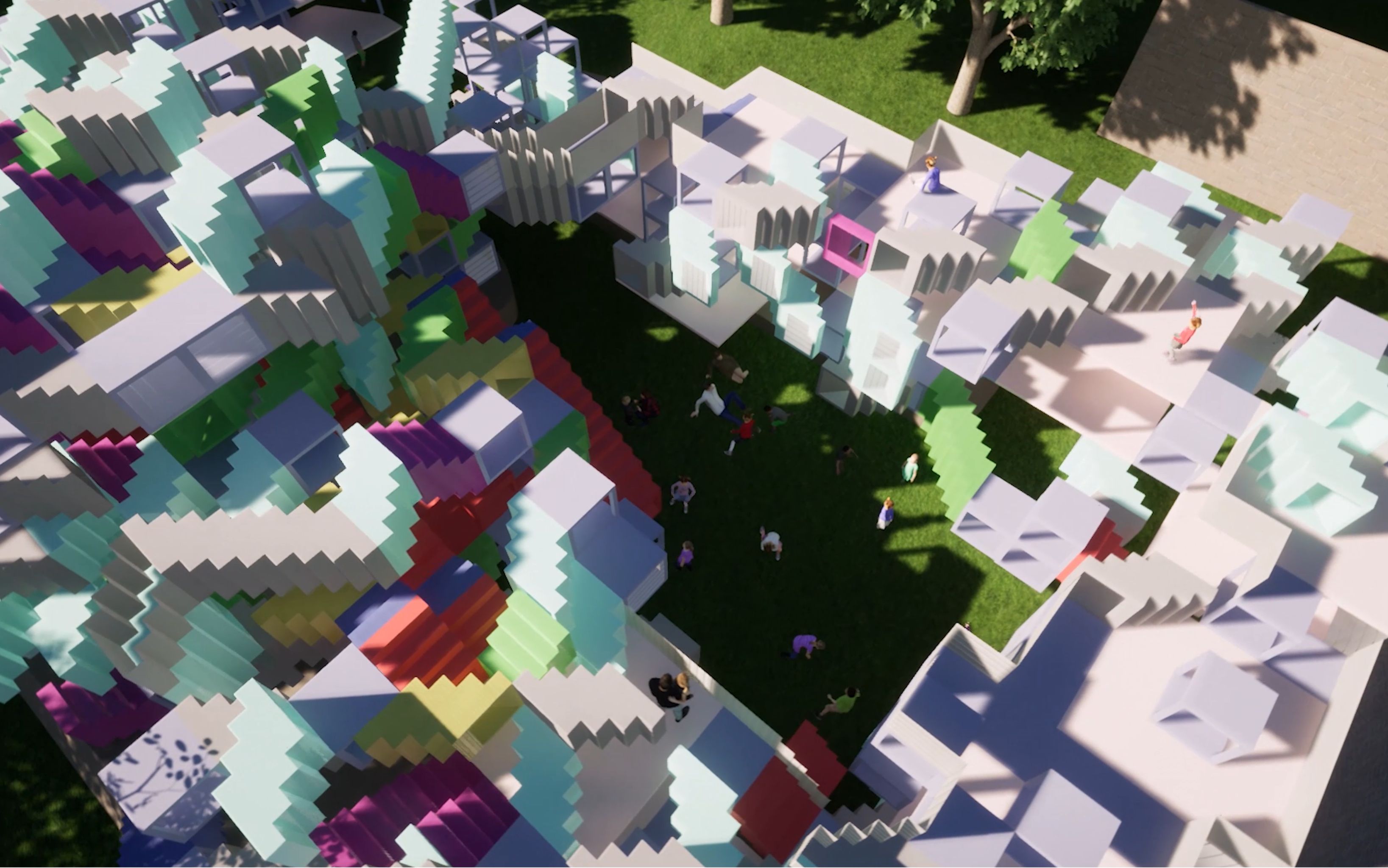 create a diverse network of tunnels and stairs to become a playground for children.